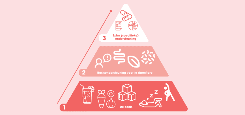 Wenn Sie diese Pyramide Schritt für Schritt befolgen, unterstützen Sie eine normale Verdauung und eine ausgewogene Darmflora. Beginnen Sie mit den Grundlagen und fügen Sie bei Bedarf zusätzliche Unterstützung hinzu. Auf diese Weise schenken Sie Ihrer Verdauung die Aufmerksamkeit, die sie verdient!