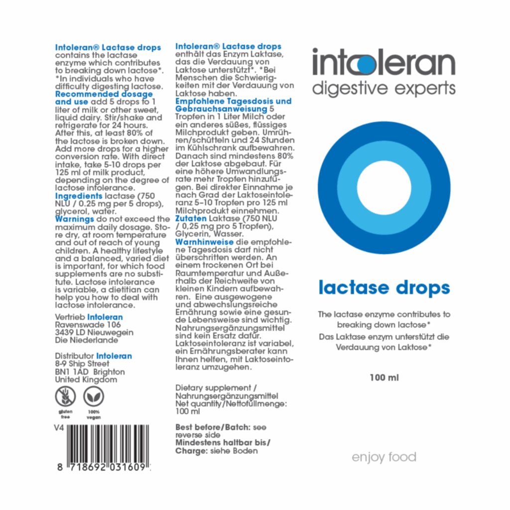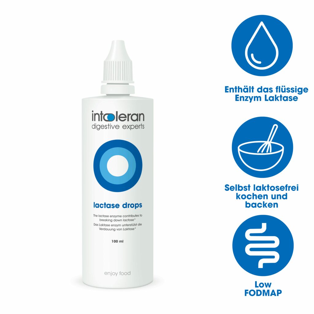 Lactase Drops 100 ml enthält das Enzym Lactase in flüssiger Form (750 NLU Lactase pro 5 Tropfen). Durch seine flüssige Form ist es ideal, um Milch und Milchprodukte bei Laktoseintoleranz* laktosefrei zu machen. Dadurch wird laktosefreies Kochen und Backen viel einfacher! Unser Produkt Laktase Drops ist für alle Altersgruppen geeignet.