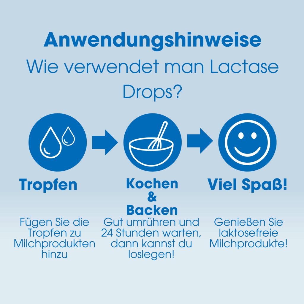 Bitte beachten Sie: Die Tropfen sind nicht für saure Milchprodukte wie Joghurt, Quark und Buttermilch geeignet. Früher waren dies die Disolact-Tropfen.