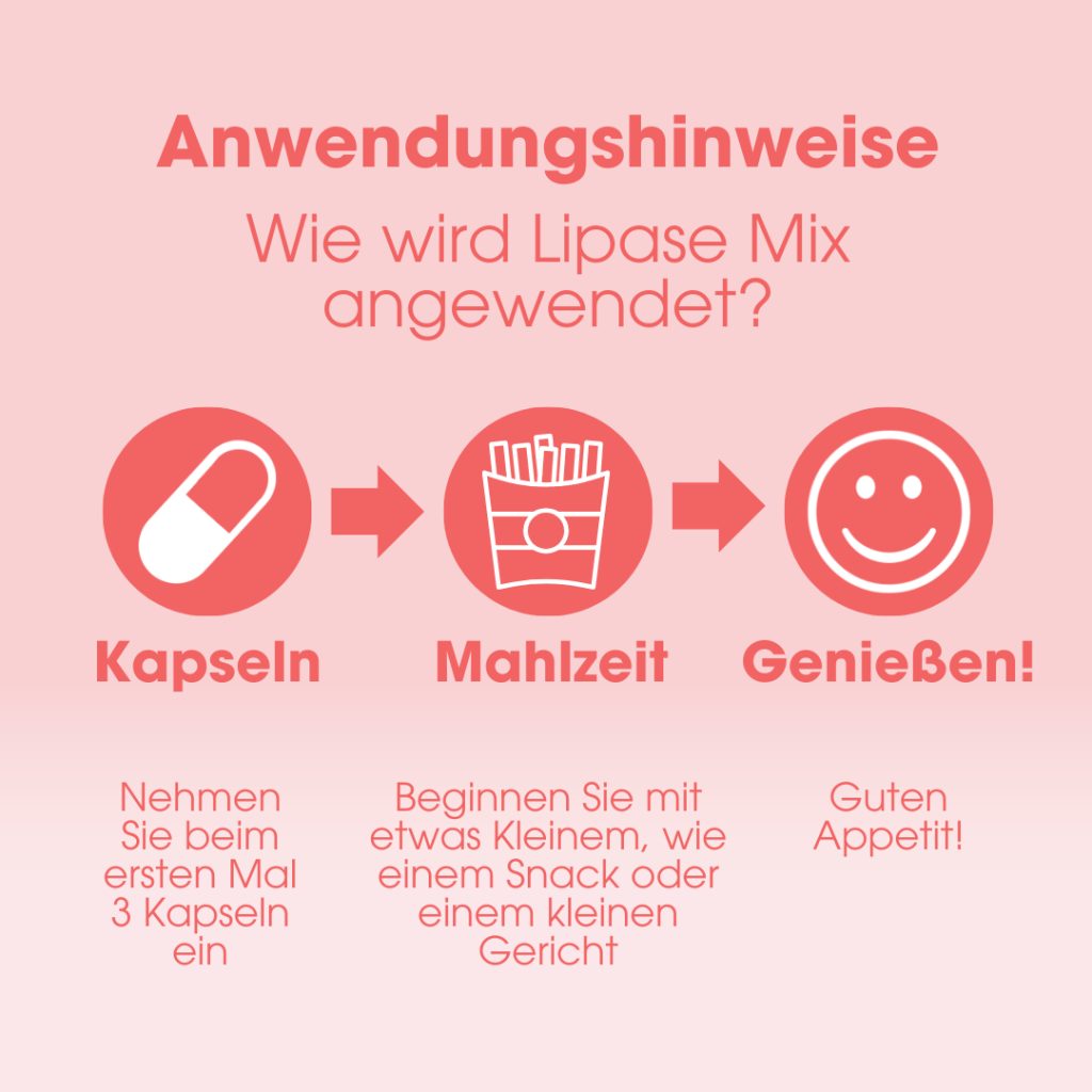 Lipase Mix enthält die Verdauungsenzyme Lipase, Amylase und Protease. Lipase hilft bei der Aufspaltung von Fetten während der Verdauung.