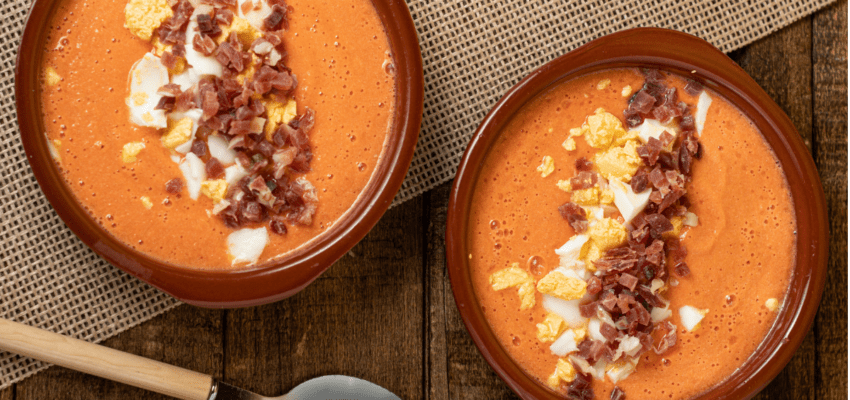 Salmorejo ist eine traditionelle kalte Tomatensuppe aus Südspanien. Sie sieht ein bisschen aus wie Gazpacho, ist aber cremiger und voller im Geschmack. Diese Suppe ist ideal für heiße Tage. Die klassische Version enthält jedoch Zutaten, die bei einer FODMAP-armen Ernährung nicht gut vertragen werden.