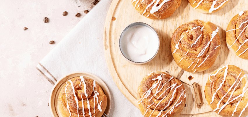 - Brötchen backen: Die Zimtbrötchen im vorgeheizten Backofen 20-25 Minuten backen, bis sie goldbraun sind.