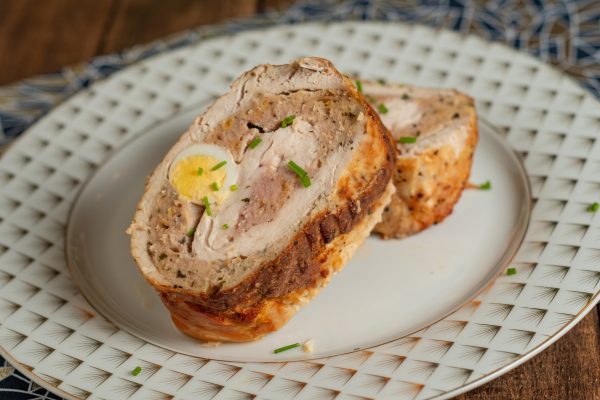 Ingredientes (6 personas): 1 kg de pechugas de pollo fileteadas finas 400 g de carne picada de pollo 6 huevos...