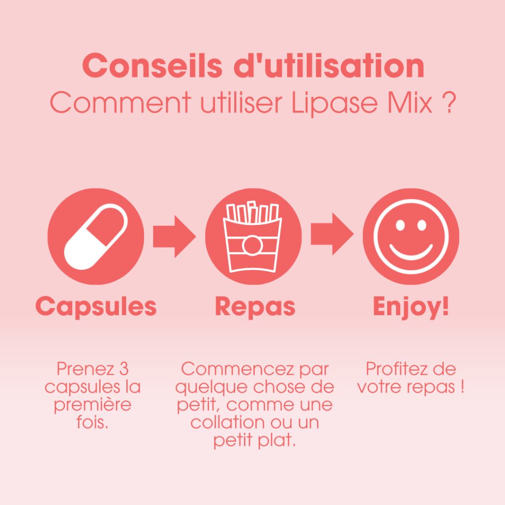 Lipase Mix contient une forte dose de lipase, l’enzyme impliquée dans la décomposition des graisses. Comme les repas ne contiennent généralement pas que des graisses, la formule est complétée par de l’amylase et de la protéase, qui aident à décomposer les glucides et les protéines. Les gélules sont faciles à ouvrir et conviennent donc également aux enfants à partir de 2 ans.