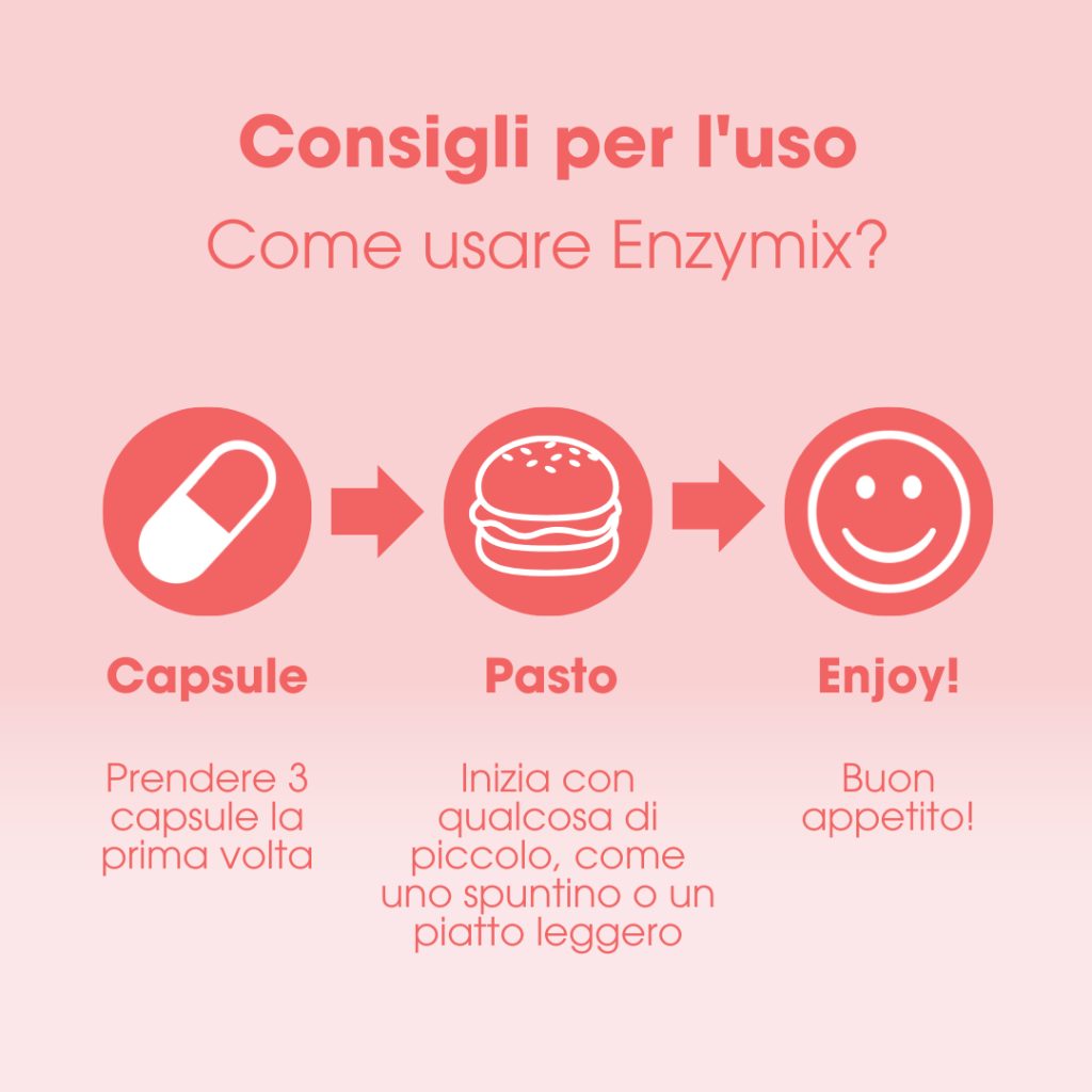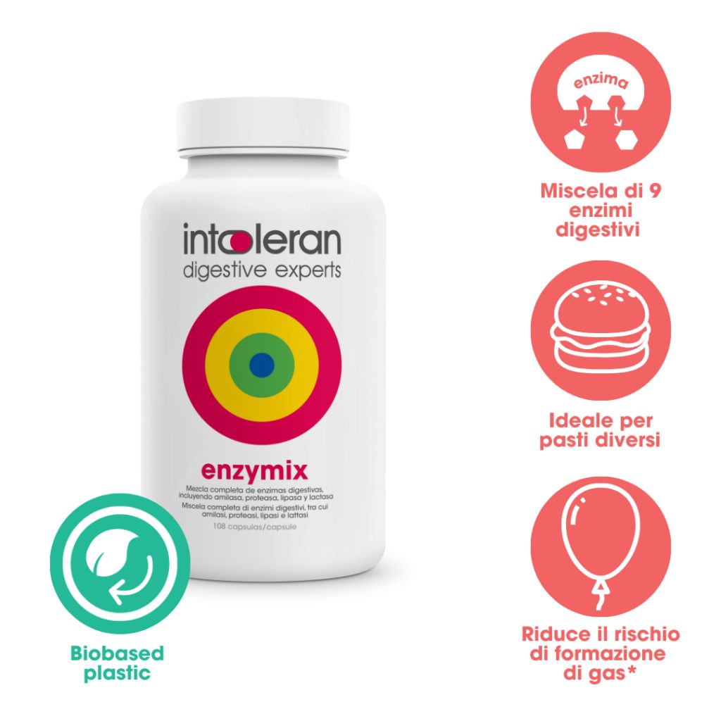 Enzymix contiene cellulasi, un enzima che aiuta a scomporre le fibre presenti negli alimenti vegetali.