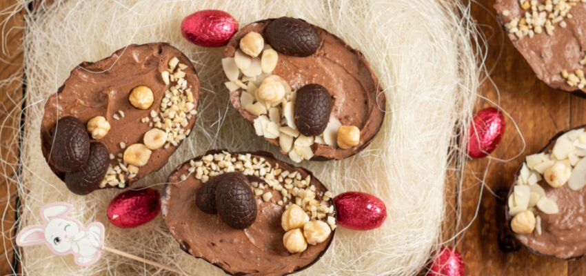 Un delizioso dessert ideale per la Pasqua: croccanti uova di cioccolato ripiene di una deliziosa mousse alla crema di nocciole!