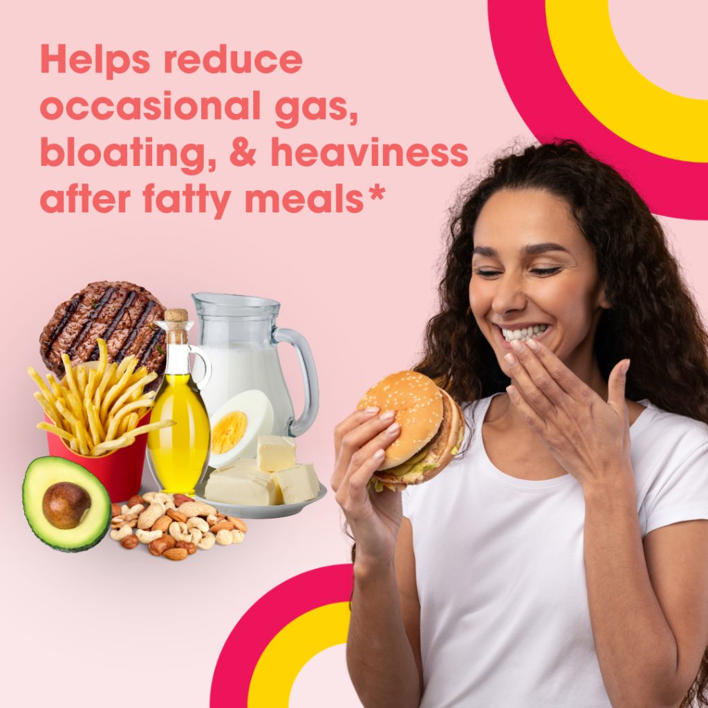 Helps reduce occasional gas, bloating, and heaviness after fatty meals*