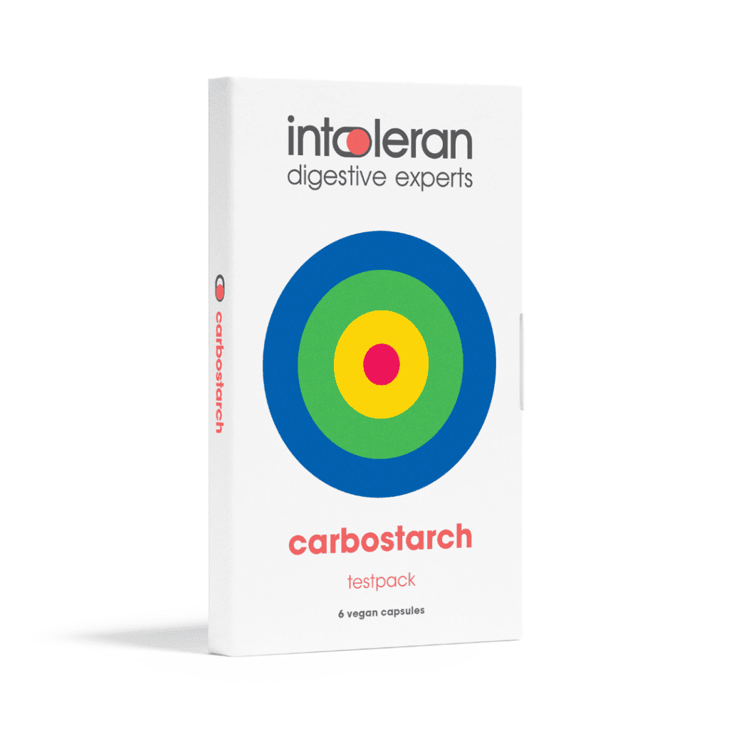 Carbostarch contains a special, high-dosed blend of digestive enzymes that help in the breakdown of some hard-to-digest carbohydrates (FODMAPs), sugars and starches. The enzymes present in this product include Alpha Galactosidase (1200 u), Lactase (10,000 FCC), Gluco-amylase (2500 u) and Invertase (7500 u).
